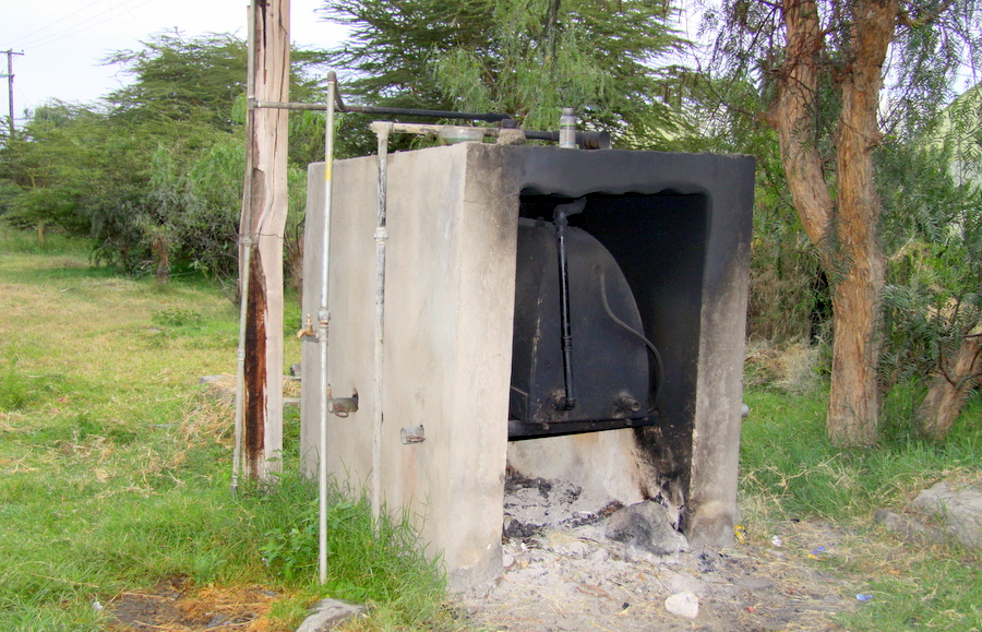 Время 2 часа ночи. Решаем позвонить Антонио, не берет телефон. Набираем еще много раз, бесполезняк. Пишем смс Нельсону : «Возле нашего кемпа люди развели костер и громко болтают. Это небезопасно». Мобайл блок. Веселуха! Блин, да что ж такое? Будут убивать в африканской ночи и VIPстраховка не поможет! никого не дозовешься! Откуда они взялись? Размышляли как бы дипломатичнее сказать этим дурням, что мы хотим спать, но так и не решились. Ржач стал тише – оказывается 2 ушли. Потом все стихло, из окошка увидели, что остался один. Огонь догорает и освещает его страшное лицо. Уснул на стуле с открытым ртом. Жаль, что ночью мухи не летают. Измученные, уснули под утро. Утром никого не было, дозорщик исчез, я покрутила краник на трубе, отходящей от ацкого котла - оказывается грели воду.