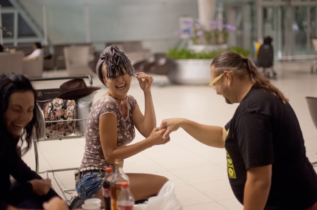 К 10-ти вернулась в отель паковать чемодан и двигать в аэропорт- в 5 утра рейс в направлении Бангкок- Ашхабад- Киев. Но не думайте что на этом моя история заканчивается :) Ну во-первых позитивный момент- мы разговорились с таксистом по дороге в аэропорт на столько, что по приезду он сказал что платить не надо. Приятно удивлена таким позитивным моментом я таки всучила водителю по имени Tuchakorn 200 бат (для справки от Soi Phetburi,19 по счетчику накапало что-то около 185 бат) и в прекраснешем настроении отправилась сдавать багаж. Вот тут-то все и началось. Нам объявили, что в связи с погодными условиями рейс задерживают на 3,5-4 часа. Всех попросили пройти паспортный контроль и ожидать дальнейшей информации в волшебной стране Duty free, которая в Бангкоке между прочем невероятно огромных размеров. На самом деле не сильно расстроившись, так как половина самолета была уже знакома друг с другом (напомню, мы все вместе летели из Киева в Бангкок) под виски с колой, веселые истории и впечатления каждого в очень, еще раз повторю ОЧЕНЬ (без всякого там сарказма) комфортной зоне отдыха аэропорта Бангкока мы начали коротать время задержки рейса. Самое увеселительное событие первых пяти часов пребывания в аэропорту – Валя (помните, я в начале истории о своей поездке, сказала что расскажу еще историю о Саше и Вале, с которыми ехала в Патайю), так вот, Валя наконец-то согласилась выйти замуж за Сашу! Мы долго не думая тут же решили и отпраздновать это событие. Гуляли свадьбу мы весело. Но на шестой час прибывания в аэропорту ко мне пришло осознание того (точнее ко мне просто пришло сознание не на долго), что мы уже шестой час в аэропорту, на табло рейс наш отменен, информации никакой нет и собственно говоря, все просто сидят и ждут. Собравшись с мыслями я отправилась в информационное бюро. Ничего полезного там не удалось узнать, так как дозвониться в авиакомпанию было невозможно. Стремительными усилиями я таки нашла сопровождающего от авиакомпании и в кругу (в прямом смысле- он стоял окружен толпой людей с рейса) единомышленников начался допрос что к чему. В общем как нам рассказывали, самолет не мог вылететь, так как в аэропорту Ашхабада обледеневшие посадочные и взлетные полосы. Другого выхода, как продолжать веселье у нас не было :) Еще каких-то 10 часов и в 19:40 (вместо 5:00) мы таки вылетели в Ашхабад. Там по прилету нас уже ждал самолет, почти весь забит местным населением направляющимся в сторону Киева. Тут расскажу еще один нюанс. Туркмены садятся в самолете как им хочется :) Ну и правда, зачем эти посадочные талоны, если я лечу с братом, сватом, а допереть попросить при получении мест, что бы посадили всех вместе просто невозможно :) Легче потом переругаться со всем самолетом, в том числе со стюардами, стюардессами, пилотом, охраной, доказывая, что какая разница, что у меня там в талоне посадочном написано- я же с братом еду! :) В общем веселуха. Еще час в самолете просидели в аэропорту, потому что охрана выводила особо буйных на разборки на улицу (троих по итогу таки выгнали с рейса). Так что, если вдруг надумаете лететь Туркменскими авиалиниями, подумайте на сколько вы выносливы и морально устойчивы, так, на всякий пожарный... :) Три с половиной часа, минут 30 паспортного контроля и я радовалась морозному утру в Киеве :)