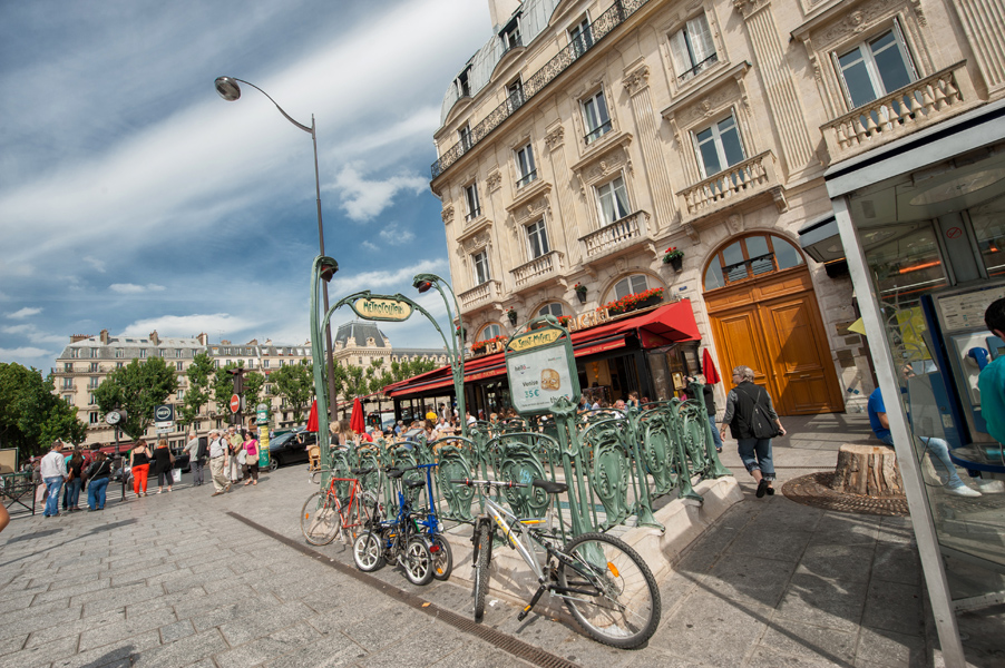 Сразу же расскажу о метро в Париже. Оно кардинально отличалось от увиденных нами в предыдущих странах. Красивая ажурная кованная надпись «Метро» зеленого цвета на улице абсолютно не приметна, поэтому найти вход в метро еще та задача. Турникеты с огромными металлическими дверьми при входе, которые очень тяжело открываются, при возможности норовят треснуть вас по лбу или зажать ваш багаж. При входе не забудьте купить магнитные билетики, которые обязательно нужно положить в карман с мобильником, что бы они размагнитились и больше не работали (меняют на новые без проблем). Мы покупали 10 билетов на двоих- самый выгодный вариант. Безлим на весь день- 13 евро.