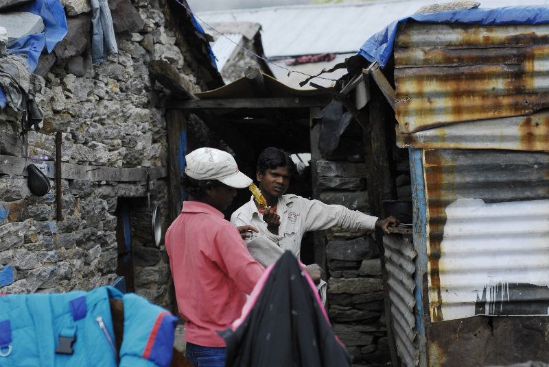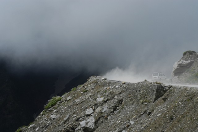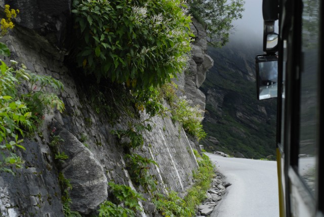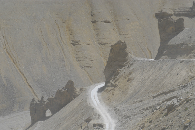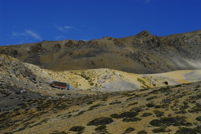 Самым тяжелом оказался путь в долине Мор, после Панга, 36 километров плоского плато, почти без покрытия, дороги не было, постоянно съезжали на грунтовки и тряслись по камням в пыли. Время превратилось в бесконечность, виды завораживали и от них тошнило; пыль, тряска, высота законесрвировали чувства, ничего не хотелось. За фотоаппарат стало страшно и он был спрятан от пыли далеко в рюкзак. Мысль у всех была только одна - выдержать и доехать. Пара европейцев в возрасте - выпрямленные спины, сжатые руками подлокотники кресел и решительность на лице. Доехать. Впереди самый высокий перевал на пути - Тагланг ла 5328 метров, а за ним, совсем не далеко, и Лех. Непонятно от чего голова идет кругом, то ли укачивание большого автобуса, то ли высота. Кому-то на перевале становится совсем плохо, девушка с изможденым лицом рухнула в тень у колеса автобуса.