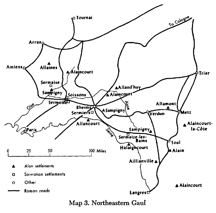 А ещё одна часть непокоренных алан ушла на Запад, через Паннонию (частично современную Румынию), на юг современной Германии к границам Галлии, т.е. границам Римской Империи...