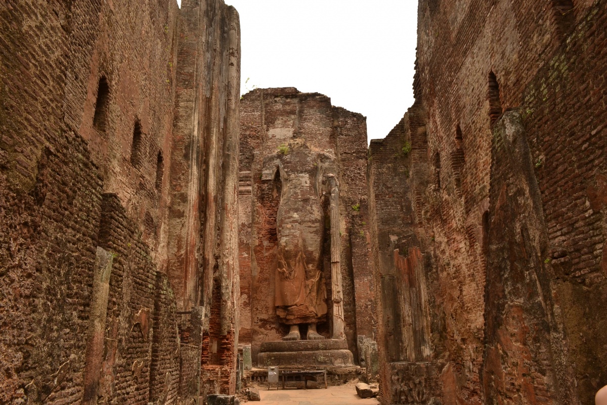 На следующий день выспались, перепаковались и выдвинулись в Поллонаруву. Там были встречены случайным помогалой на тук-туке, устроившим нам и гест, и возницу на следующий день. Последний провёз нас аж по трём руиновым точкам (одна «основная» с платным входом, и две поменьше – бесплатные, после чего проводил на автобус до побережья. Между делом привёз на фабрику деревянных изделий – ручная кладь пополнилась слонами ручной работы, а воспоминания об экскурсии – долгим и непримиримым торгом. Наша взяла. Всё удовольствие обошлось в 6000 – как два билета на руины.