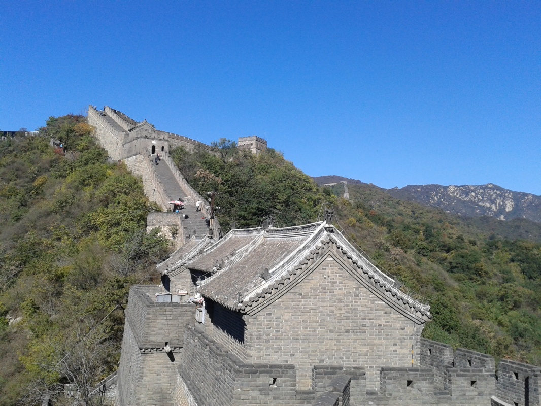 Ну что говорить про стену, надо смотреть! Нам поездка понравилась, если без фанатизма, то она под силу любому. Мутяньюй - один из туристических участков стены (2 часа езды от Пекина), не такой многолюдный, как Бадалин, но в одиночестве не останетесь. Трехкилометровый отреставрированный отрезок извивается по горному хребту, так что виды очень хороши как на стену, так и со стены. Есть еще заброшенный кусочек, который практически полность зарос небольшими деревцами и сильно разрушен, вот тут-то вам предоставится возможность прогуляться в гордом одиночестве. На стену можно подняться по канатной дороге, а спуститься на санях, очнь весело! Y80 в обе стороны. В общем, смотрите!