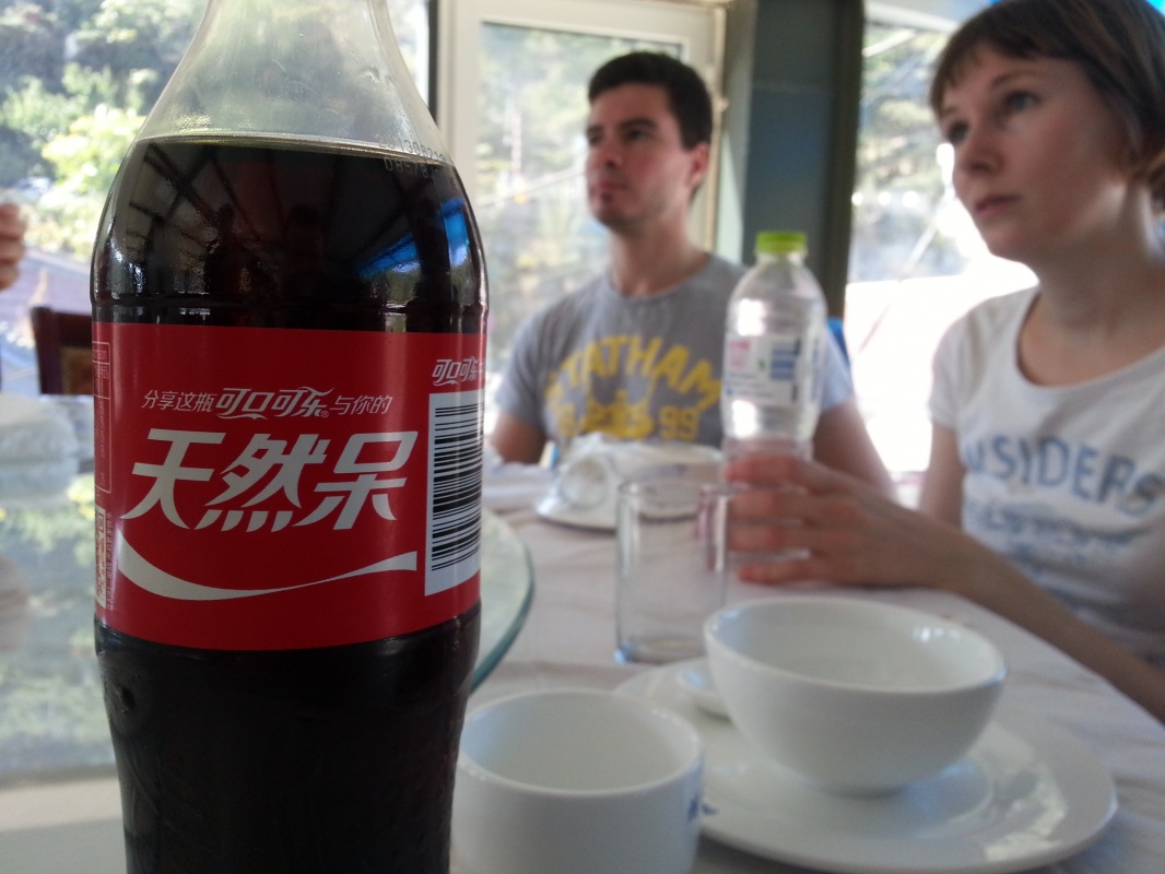 Все это время в Пекине в среднем было около +15, хоть и солнечно. Мы очень хотим тепла и надеемся, что за 1000 км к югу будет хоть на пару градусов теплее, да и теплой одежды у нас нет. Купили Теме настоящую китайскую толстовку, любо смотреть - такая яркая, что того и гляди случится эпилептический приступ:) (Y89 без торгов).
