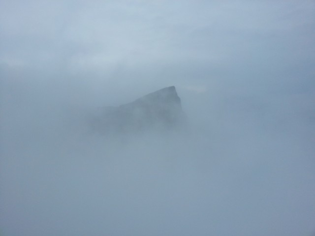 В одном из отрогов горы есть огромная вертикальная дыра, по низу которой проходит дорога. С одной из смотровых площадок нам-таки удалось ее рассмотреть. А еще в одном месте строят эскалатор внутрь скалы - вскоре тем, кто боится канатных дорог, будет проще добраться на вершину.