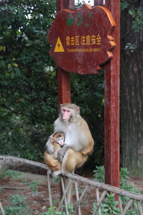 Сразу за входом в парк живут обезьяны, слегка нагловатые, но вполне воспитанные, не сравнить с балийскими извергами. Но лучше при них не жевать - сразу начинают приставать насчет поесть. До канатной дороги ходит автобус, но можно и пешком, идти одно удовольствие. Канатка не менее живописней вчерашней (Y60 в одну сторону) - со всех сторон вырастают узкие высокие известняковые скалы, на которых непонятно как держатся деревья. Натурально ландшафт из Аватара!