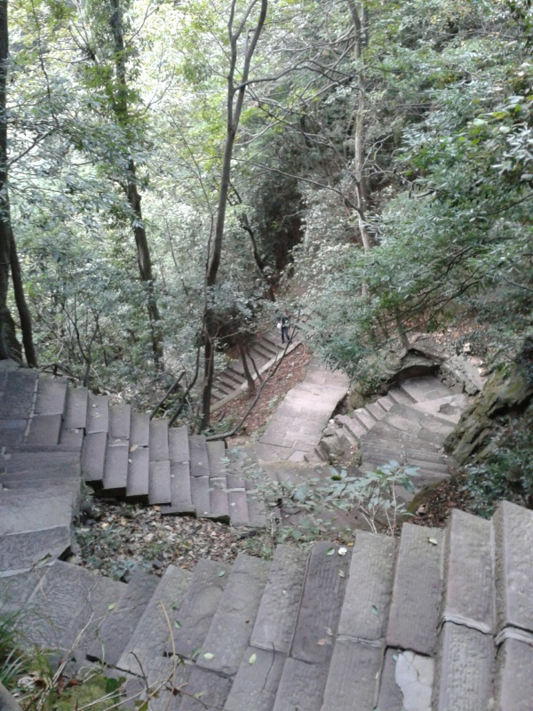Обратно спускаемся по ступенькам. Ох, такой длинной лестницы в нашей жизни еще не было! Спустились мы всего на 500 метров, но преодолели почти четыре тысячи ступенек. Мы запереживали, что не успеем добраться затемно до деревни, поэтому припустили вниз дай боже, и через час мы были внизу, но совершенно выдохшиеся. На самом деле, спуск может быть очень приятной прогулкой - лесенка в приличном состоянии и проходит по лесу, так что не жарко, разные зверюшки и птички тут же, да и на скалы можно снизу посмотреть, только закладывайте на спуск хотя бы 2 часа.