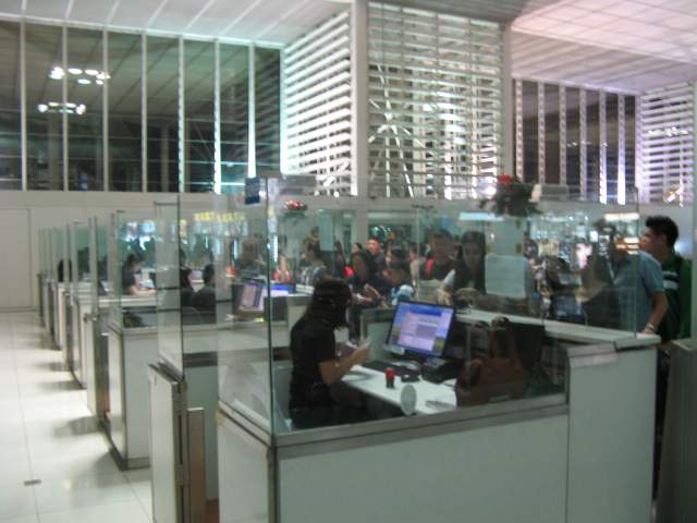 А вот Эропорт запомнился даже очень. Естественно, народу тьма, очереди, хаос и бурление масс %-))) И нет точной информации, нет инструкций что да как, спросить особо тоже не у кого - их просто не видно на фоне пассажиров)))
