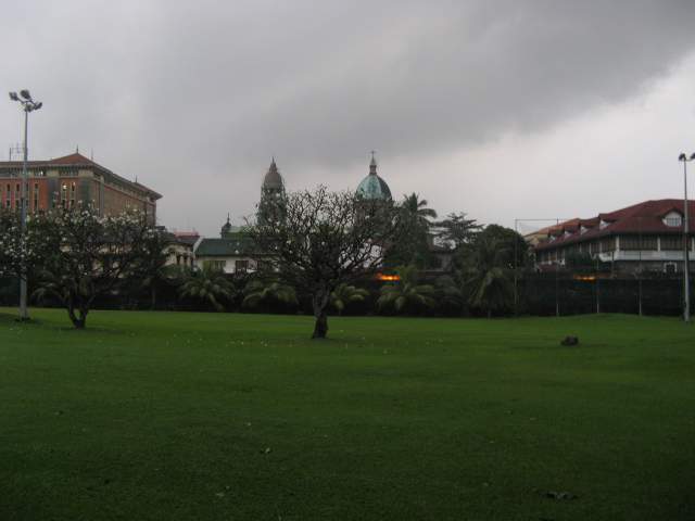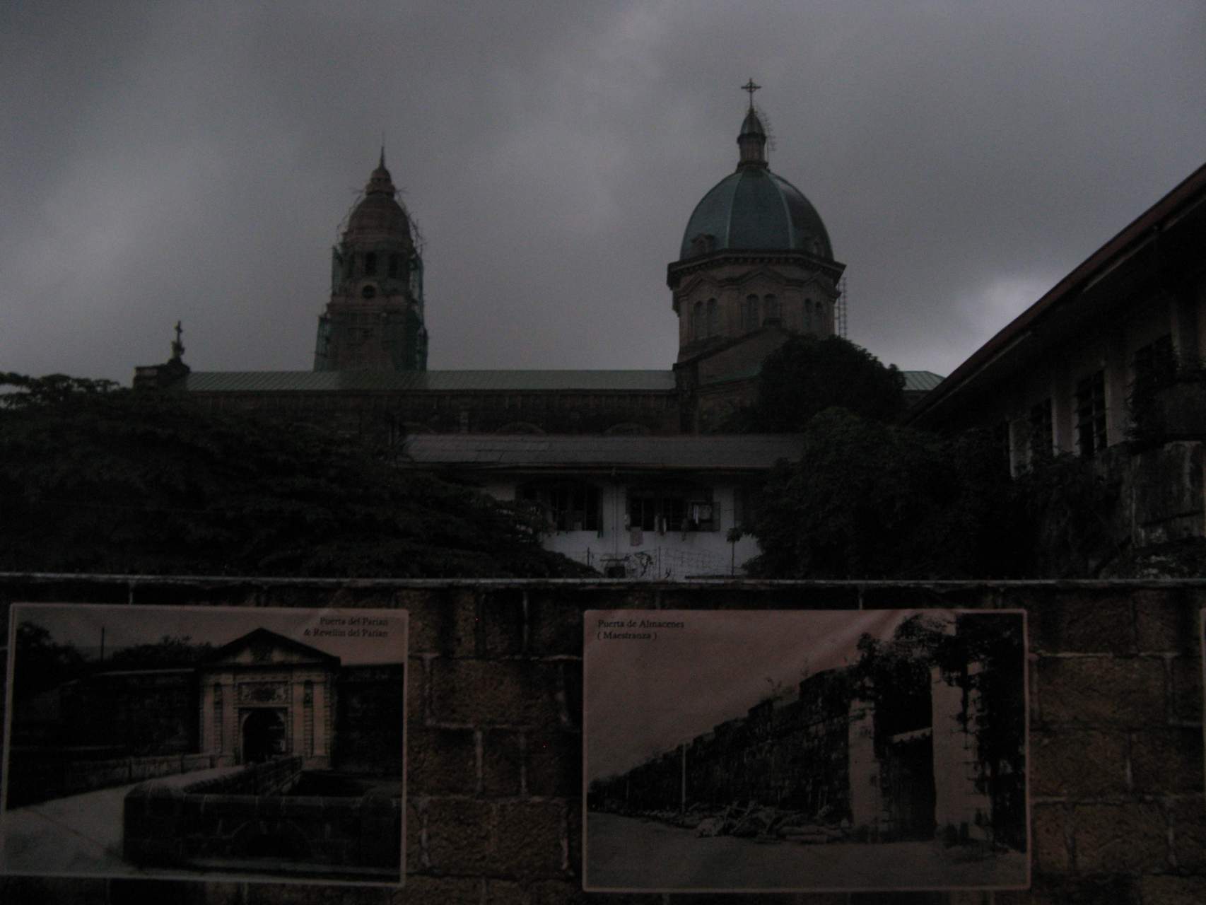Кафедральный собор Манилы или Собор Непорочного Зачатия Пресвятой Девы Марии (исп. Manila Cathedral) - многократно восстанавливаемый из пепла символ Интрамурос, да и тот лишь издалека - наступили сумерки и заморосил мерзкий дождь. Что-что, а промокать перед самолётом не хотелось совсем. Пришлось искать прибежище, и нашлось оно в барчике у самой