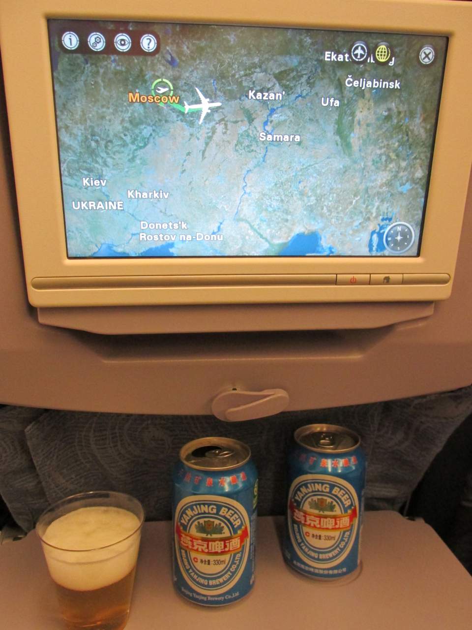 Air China - весьма достойная авиакомпания, не хуже нашего Эрофлота. На борту - уже Китай, под крылом - ещё Москва %-)))