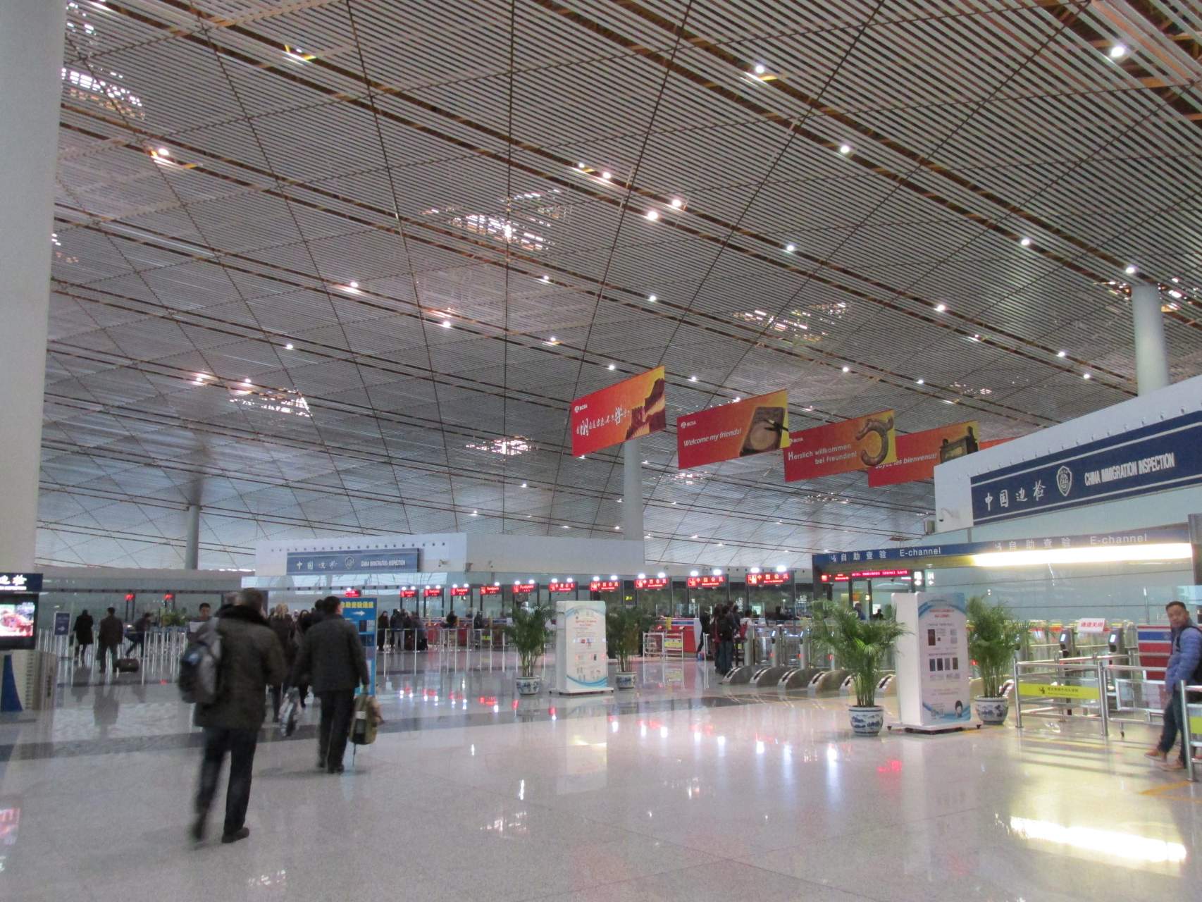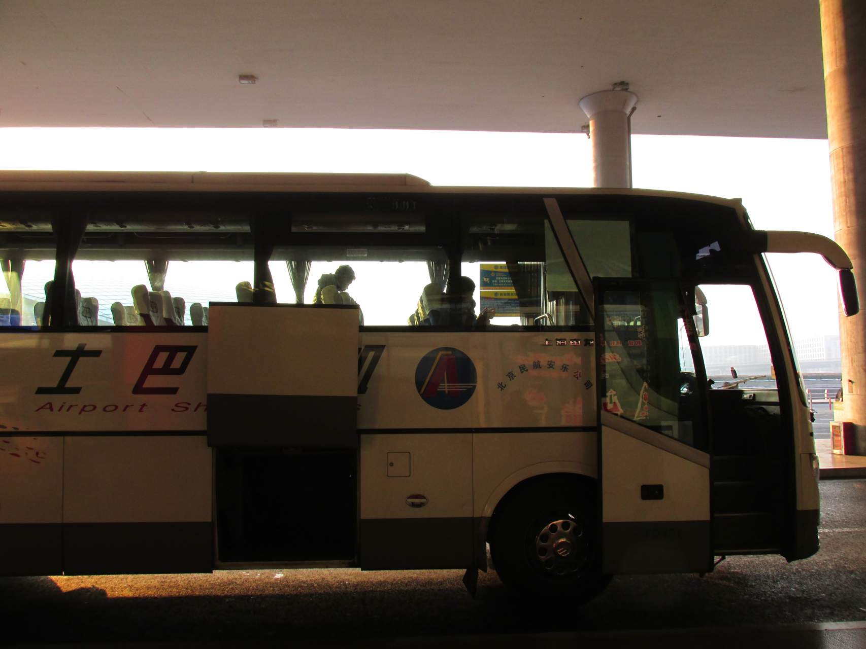 В аэропорту всё просто, без шуток - есть и надписи на английском, и даже русскоязычные ассистенты. Но я и без них легко купил билет на шаттл-бас, идущий от аэропорта почти до самого Запретного Города в центре Пекина. Удобненько! Впрочем, там и метро есть. Долгое, правда, и дорогое. На обратном пути на нём проедусь.