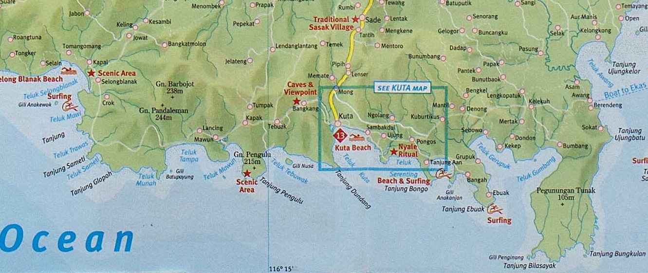 Пошёл гулять на восток. На запад дальше, туда не сегодня. Там, конечно, интересные пляжи Mawun и Mawi, но до них не так просто пешком добраться %-))) Завтра туда двинусь. А сегодня - на восток - в сторону пляжа Серентинг, что расположен неподалёку от деревеньки Ebonut %-)))