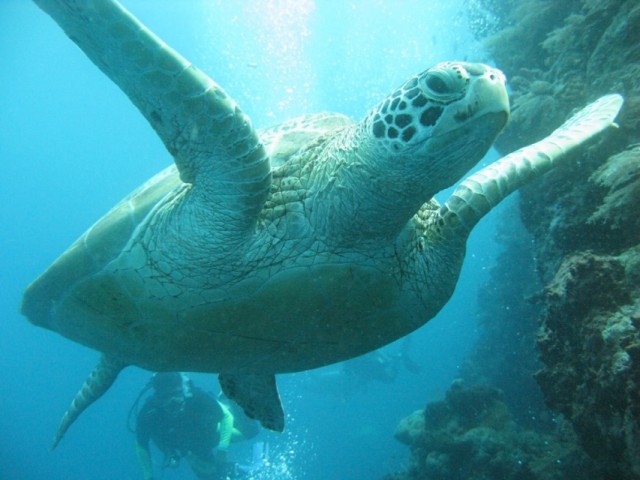 Над дайверами снорклить у вас не получиться - они же глубоко вдоль обрыва погружаются - метров на 15-20 и и проплывают вдоль стены прилично.