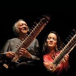 Потом в руки попался видео- концерт в память Джоржа Харрисона, где выступали многие почитатели, коллеги Битлов. Ну и конечно он – мастер который учил его играть на ситаре, человек дружба с которым принесла свежую индийскую струю в творчество «Битлз» - Рави Шанкар. Выступал он со своей дочкой Аноушкой Шанкар - меня она уже тогда очаровала.
