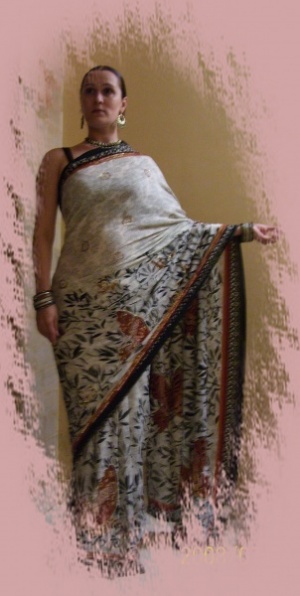 У меня дома лежит два сари.. я нет-нет, да и одену.. покрасуюсь перед зеркалом и сниму=))вот поеду, еще куплю=))