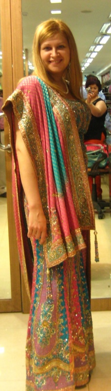 получается в сари ходить непринуждённо?Сари дало чувство непривычной свободы! Именно - непринужденности. Не знаю, с чем сравнить... как будто вокруг тебя облако. Специально выбрала материал типа шифона, невесомый. Даже валяться на кровати с лэптопом в нем могу, но вот лазить по камням - пока нет.