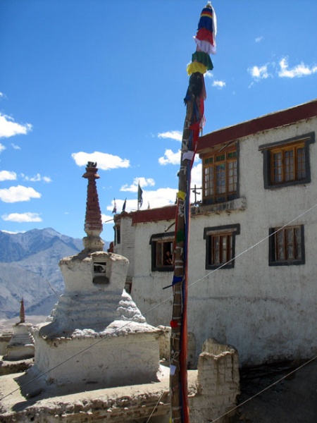 • Монастыри-гомпы. Практически в каждом более-менее значимом населенном пункте Ладакха есть буддистский монастырь (гомпа), выстроенная в тибетском архитектурном стиле - многоэтажные, с толстыми фортоподобными стенами, с молитвенным залом (ду-хан), где находится изображение почитаемого будды или другого буддийского божества, с библиотеками, где хранятся манускрипты и т.д. Ежегодно в крупных монастырях проходят фестивали, во время которых устраиваются мистерии-чам или танцы в масках, изображающих злых духов и божеств буддийского пантеона. Еще одна особенность, встречающаяся в гомпах - это ритуальные статуэтки из ячьего масла и ячменевой муки, раскрашенные в психоделические цвета. Гомпы обычно открыты для посетителей с рассвета до заката. Лучше всего приезжать в гомпу во время утренней службы (обычно начинается в 7 утра), когда монахи читают мантры. Наиболее примечательные гомпы Ладакха - Хемис-гомпа, Тикси-гомпа, Ламаюру-гомпа, Пхьянг-гомпа и др.