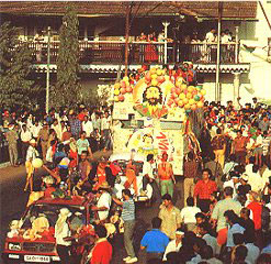 В дни карнавала праздничная процессия, составленная из колесниц самого причудливого вида, движется по улицам столицы штата Панаджи. С раннего утра начинается суета, предшествующая параду. В чем-то гоанский карнавал схож с бразильским собратом, более известным миру. Главным в этом событии, к которому готовятся полгода и столько же потом вспоминают, являются подвижные платформы, на которых разыгрываются самые разные сюжеты. Их украшение и дизайн - предмет особой гордости создателей. Ну, а чтобы никто не забыл о начале карнавала, в первый же его день жителей Панаджи из объятий Морфея вызволяет старинная португальская мелодия.