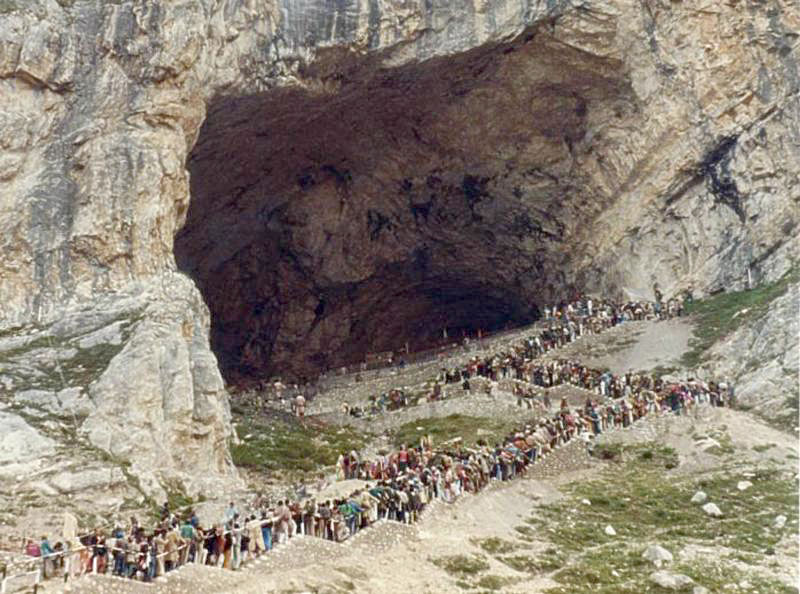 Однако поклонники Шивы не падают духом - у них есть "альтернативный вариант в соседнем регионе". Речь идет о высокогорной пещере Амарнатх, известной не только в индийском штате Джамму-и-Кашмир, но и во всем индуистском мире. Сотни тысяч паломников каждое лето стекаются к этой пещере, чтобы там поклониться ледяному сталагмиту, олицетворяющему для них лингам Шивы - древний фаллический символ плодородия.
