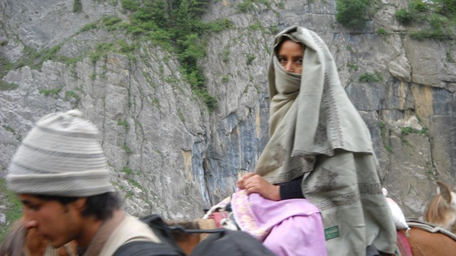Считается, что в путь к Амарнатху отправляются только индуисты. Однако среди паломников встречаются и сикхи в тюрбанах. Да и погонщики на индуистов не похожи: в чалмах, с бородами, окрашенными охрой (хной), - типичные кашмирские мусульмане. Hо работа есть работа. Паломник-индуист в "чистом виде" распознается сразу: он погружен в себя и постоянно напевает мантру, прославляющую Шиву: "Ом на'ма Шива' !" - значит "благой, приносящий счастье". Hо, будучи божеством-созидателем, Шива одновременно и бог-разрушитель. Так что здесь, в горах, надо держать ухо востро...