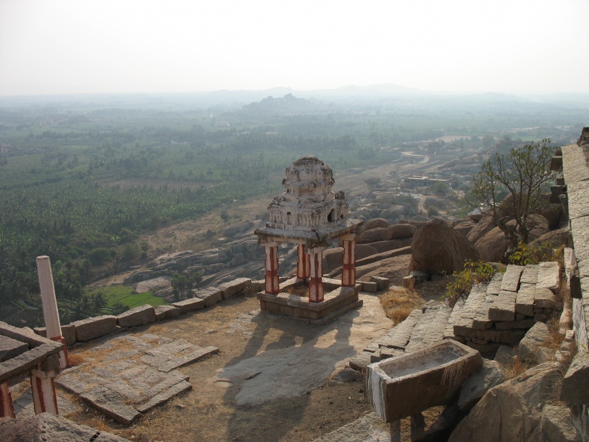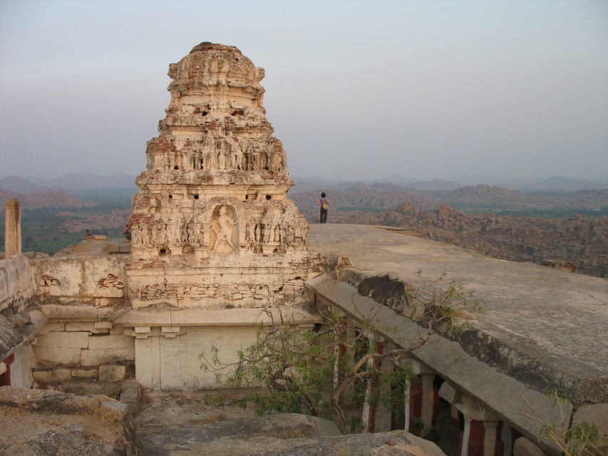 Мы забрались на крышу храма, откуда открылись замечательные виды на всю территорию Хампи. Я щёлкал затвором, краем уха слушая индуса. "Как вам здесь?", - спросил он. "Круто", - подумав, ответил я. "Давай пить чай!" "Я не готовлю чай, это мой товарищ, он скоро придёт сюда. А я продаю открытки." - ответил он. Покрутив в руках пустую бутылку с водой, я прикинул, сколько времени осталось до заката. Оставалось что-то около часа с лишним. Спуститься с горы - дело десяти минут, подняться - минут 20. Остаётся полчаса на то, чтобы добраться до велосипеда, купить воды и вернуться. "Я приду посмотреть на закат", - сказал я. Индус покачал головой.