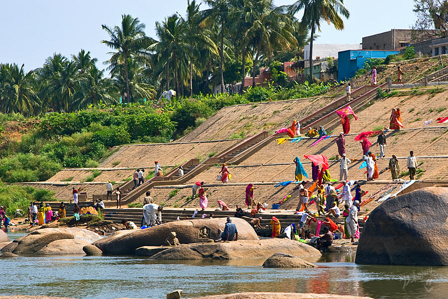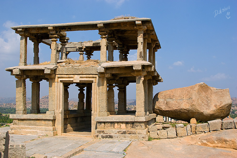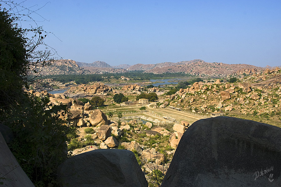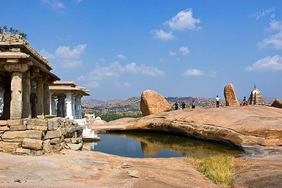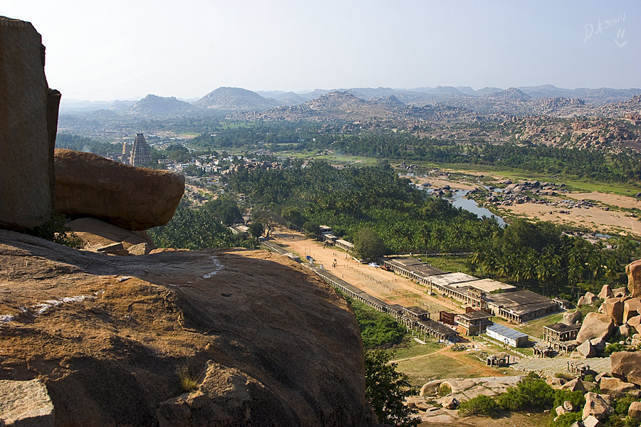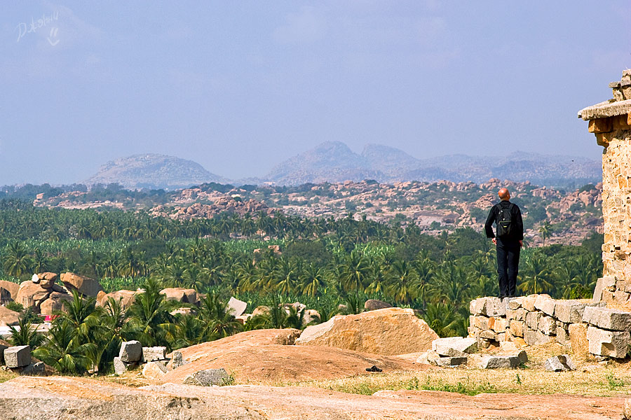 Хампи для меня оказался очередным потрясением в этой поездке. Старинный, некогда очень богатый город производит двойственное впечатление. С одной стороны, монументальные, роскошные развалины древних храмов давят своей исторической значимостью, величием, красотой и серьезностью. С другой, ощущение песочницы гигантских размеров настигает уже много позже, после отъезда, т.к. первое впечатление не дает пробиться ничему другому. Гигантская детская площадка для хиндустанского детеныша Гулливера, который натер на своей гигантской терке огромные глыбы камней и поселил между ними хиндустанских лилипутиков. Потом малыш вырос, лилипутохиндустанская крупнотерочная страна осталась жить своей жизнью. В Хампи ощущение времени еще меньше, чем в Гоа. В Хампи нет часов, минут, секунд, есть только пора или еще рано, главным мерилом времени тут переправа на другой берег, которая заканчивается с заходом солнца.