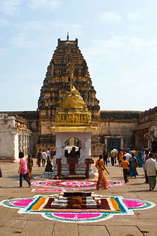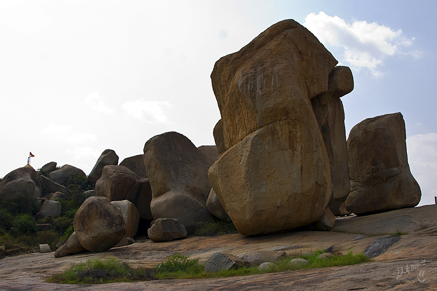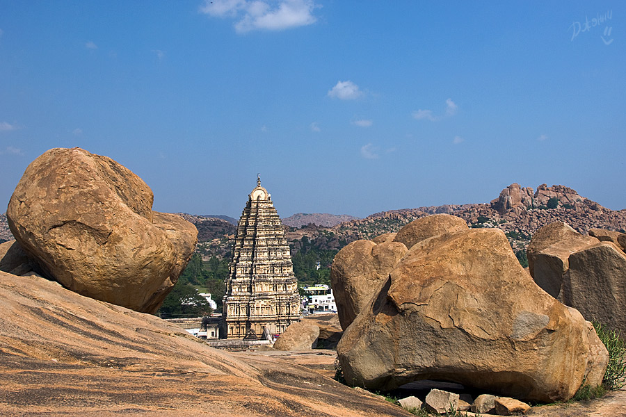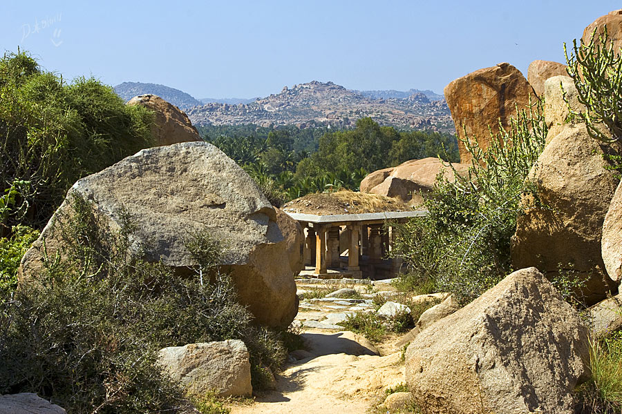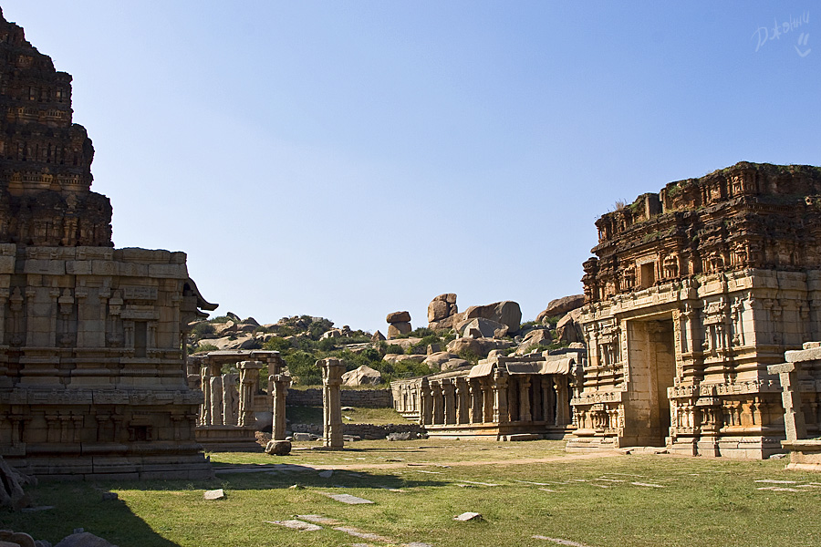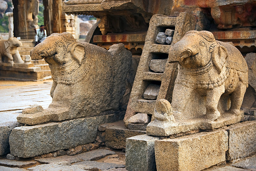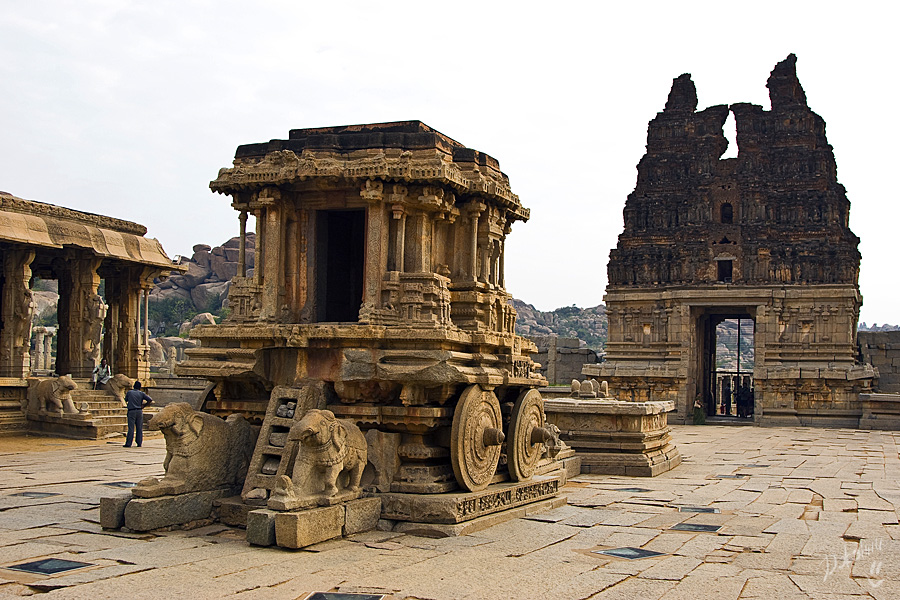 Хампи для меня оказался очередным потрясением в этой поездке. Старинный, некогда очень богатый город производит двойственное впечатление. С одной стороны, монументальные, роскошные развалины древних храмов давят своей исторической значимостью, величием, красотой и серьезностью. С другой, ощущение песочницы гигантских размеров настигает уже много позже, после отъезда, т.к. первое впечатление не дает пробиться ничему другому. Гигантская детская площадка для хиндустанского детеныша Гулливера, который натер на своей гигантской терке огромные глыбы камней и поселил между ними хиндустанских лилипутиков. Потом малыш вырос, лилипутохиндустанская крупнотерочная страна осталась жить своей жизнью. В Хампи ощущение времени еще меньше, чем в Гоа. В Хампи нет часов, минут, секунд, есть только пора или еще рано, главным мерилом времени тут переправа на другой берег, которая заканчивается с заходом солнца.
