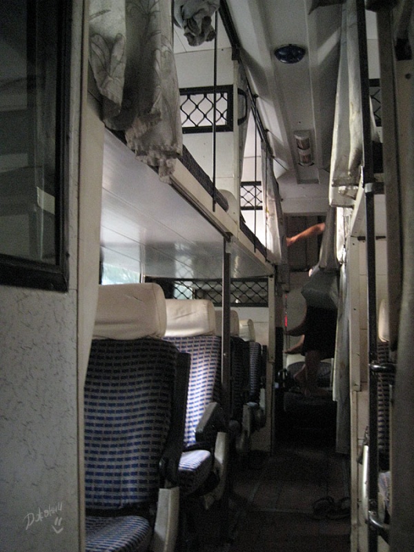 Двенадцать часов несказанного удовольствия на верхней полке слипер-баса обошлось нам в 750 рупий на человека в одну сторону. Можете себе представить, плацкартный вагон с полутороспальными полками, расположенными не поперек, а вдоль по обеим сторонам салона автобуса фирмы Volvo - вот вам и слипер-бас. Всю ночь, цепляясь за перилину, я сильно радовалась, что она есть и что мы не в конце салона. Трясло отменно, но я умудрилась вздремнуть, ни на секунду не выпуская перилку из рук. В Хампи автобус прибывает к 10 часам утра, но, уже начиная с Хоспета, на остановках нас атакуют рикши, заслышав русскую речь, самые смелые кричат: «Харащо! Давай! Да-а!» и тянут к нам бумажку, на которой неизвестный русский турист рассказывает все прелести путешествия с обладателем этой петиции. Ога, без бумажки ты... а с бумажкой ого-го! Конечно, можно сойти и здесь, но мы поехали дальше.