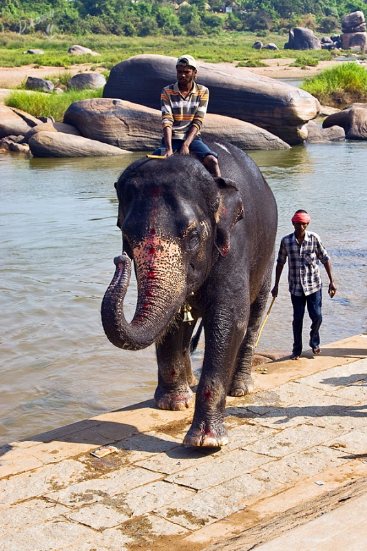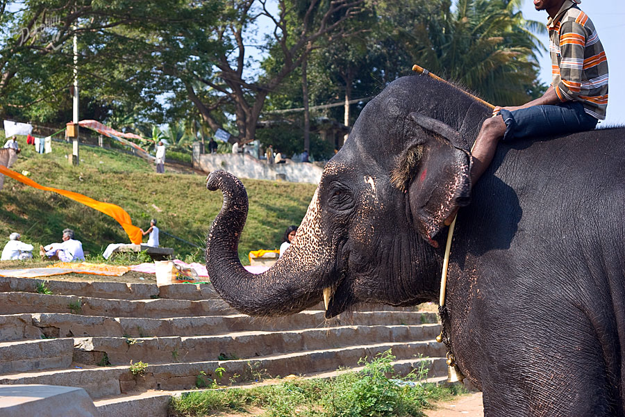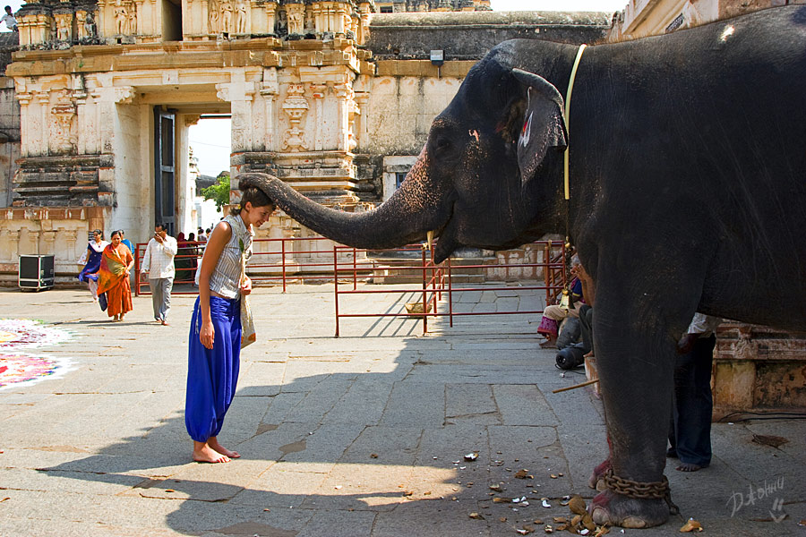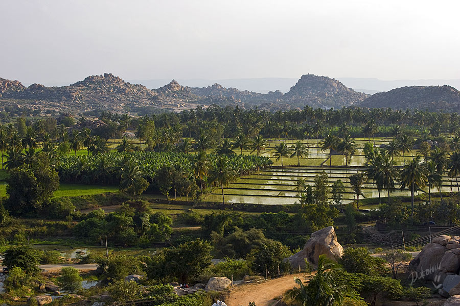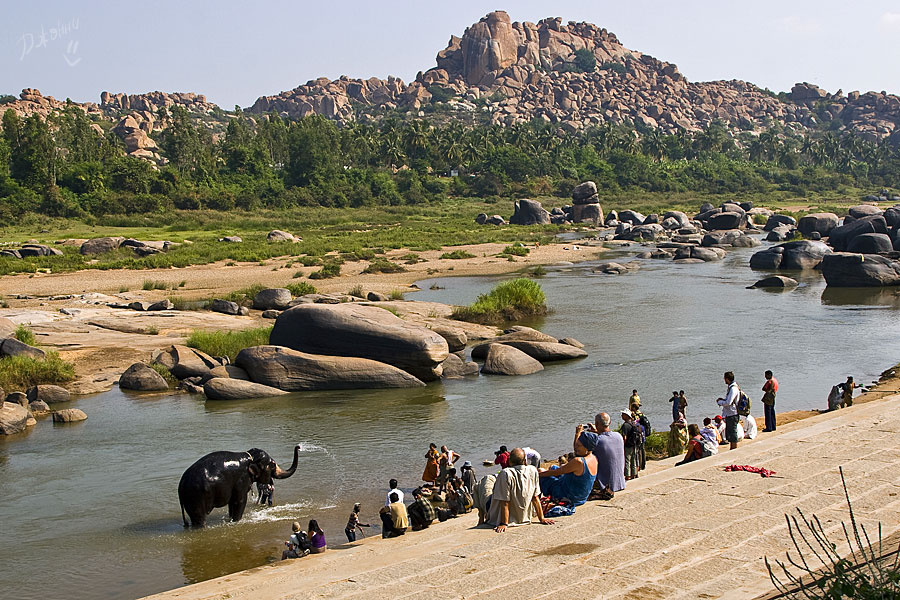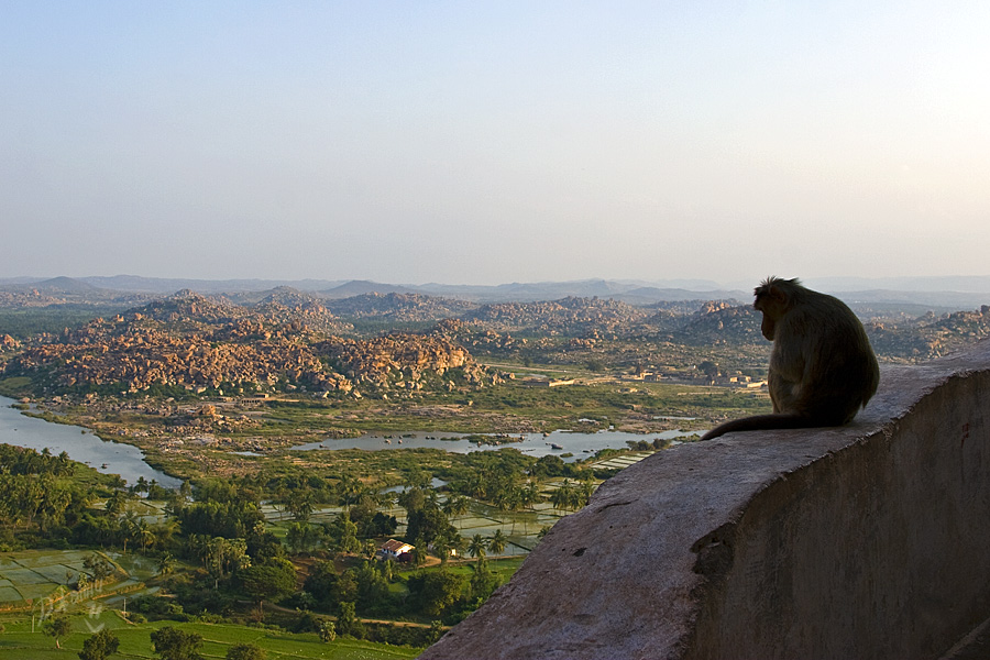 Здесь каждое утро из главного храма Вирупакши на реку приводят купаться слониху, которая после, стоя на своем «рабочем» месте за незначительную плату благоСлонит вас своим благослонительным хоботом. Здесь обезьяны сидят в засаде, а дети ходят в школу, как и везде, здесь толпы туристов, но каждому найдется рикша, который прежде с удовольствием поторговавшись, окольными круговыми маршрутами будет возить их по достопримечательностям. Здесь красивейшие рисовые поля, плохие дороги и много комаров. В сущности, здесь все, как и везде в Индии – удивительно и неожиданно!