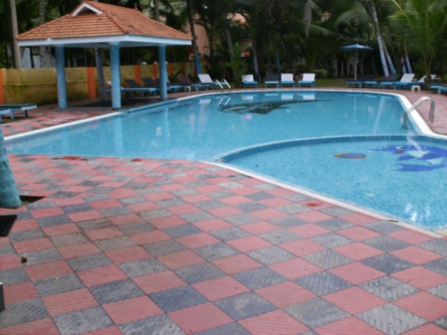Мы ехали сначала на пляжный отдых в Гоа и должны были выйти в Мапсе, но Тина досконально изучила карту маршрута и когда поезд сделал большую остановку на маленькой станции, с которой было гораздо ближе до нашего пляжа, то мы в момент спрыгнули с поезда и пошли на выход. После поезда и после прохладного Дели оказаться в 35+ было восхитительно! Я так радовалась солнцу, как и полагается ему радоваться "Солнечному лучику". Но на выходе станции нас ждало разочарование - не было автобуса. Да, автобус тут ходит, но он приезжает по расписанию постоянных поездов, а кто же знал что наш поезд здесь остановиться и что мы с него сойдем! В общем нам пришлось брать такси до Анджуны. (510рупий) Поселились мы в забронированном отеле - Анджуна Вилла за 1800 р. Хороший отельчик, хорошо кормят, есть бассейн и шезлонги для Тины, а также кондиционер в комнате для нее же. И опять страдания для меня! Я мимоза! Я замерзаю при их кондиционировании, я ехала на юг чтобы греться на солнышке. Так что пока Тина наслаждалась отдыхом в отеле, я помчалась на пляж. Солнце, море, пальмы, кокосы, бананы - это сказка посреди зимы! Я наслаждалась шумом волн, горячим песком, яркими красками и конечно же загоранием. так приятно лежать на пляже, смотреть на море и под плеск волн потягивать свежевыжатый сок.