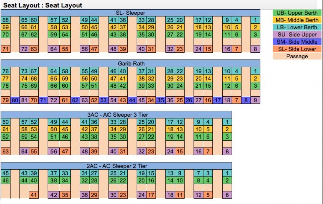 Поезда в Индии › Расположение мест в индийских поездах |