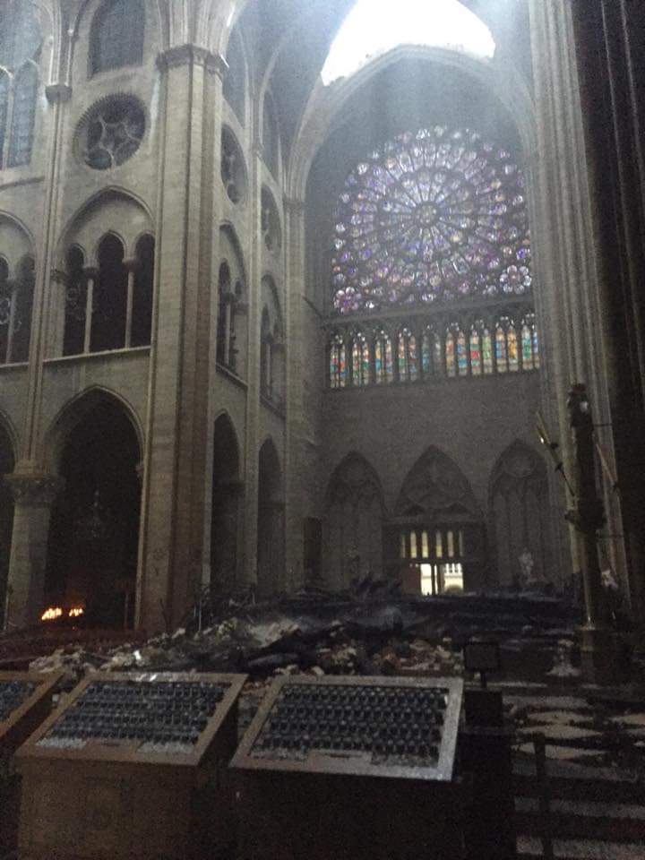 По неподтвержденной информации, в соборе уничтожены оконные розы XIII века. На фотографиях видно, что внутри здание не получило серьезных повреждений, алтарь и крест сохранились.