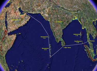 От Аравийского полуострова экспедиция будет двигаться к Мальдивам через Лаккадивские острова (Индия). Затем – пересечение экватора, Шри-Ланка и сложный переход через Бенгальский залив до Андаманских и Никобарских островов. Финиш планируется у берегов Таиланда.