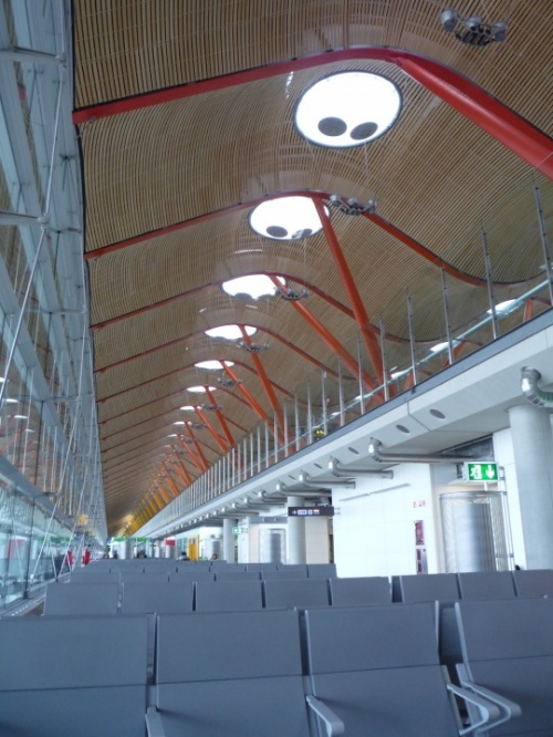 Новому терминалу испанской столицы, открытому в 2008 году, несомненно, уготована судьба стать одним из крупнейших хабов мира. В год он может принимать 35 миллионов пассажиров. Простота линейной конструкции не позволит заблудиться в огромном пространстве. В то же время огромные помещения не давят на человека: пассажиры как будто находятся внутри красочной радуги - яркие разноцветные пилоны поддерживают крышу из волнистого бамбука, кажущуюся очень легкой и невесомой.
