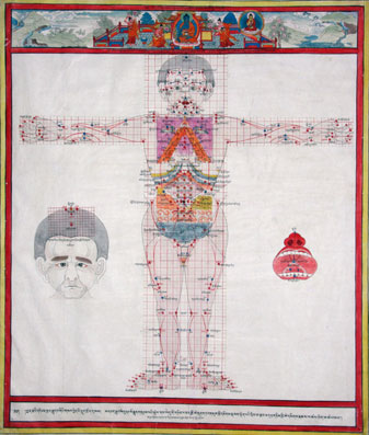 Атлас — это иллюстрации, которые служили наглядными пособиями для студентов — послушников медицинских факультетов буддистских монастырей. С годами своей актуальности учебник не потерял. Им пользуются и сегодня.