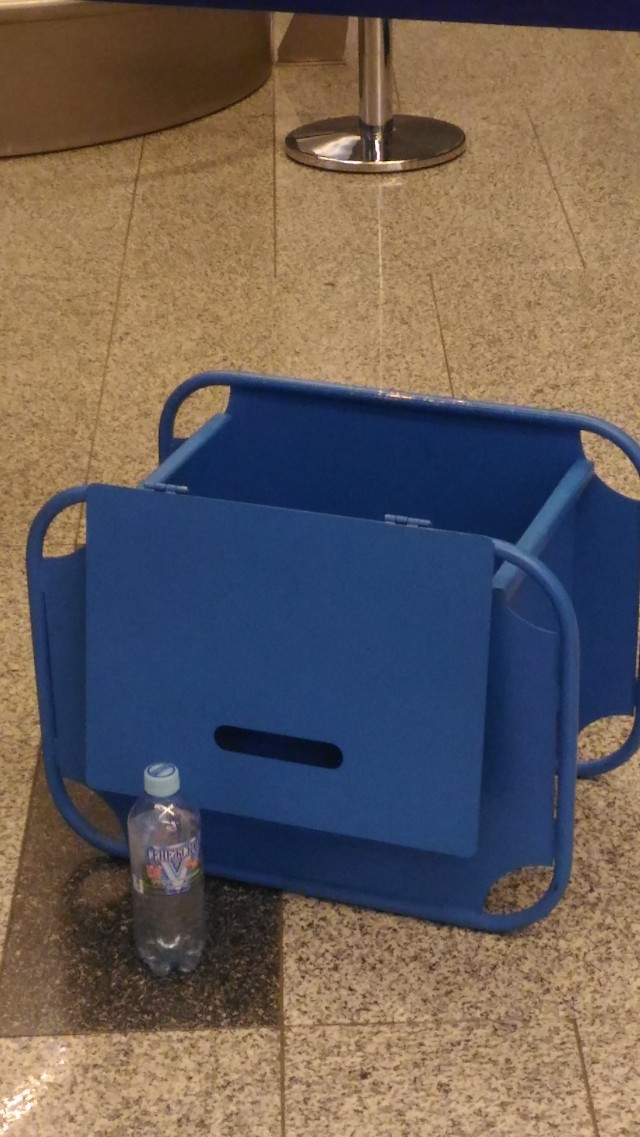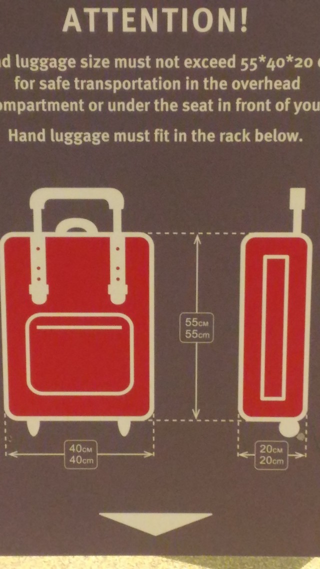 2. Калибратор. На фото. Не тот, что заявлен в правилах, а обычный, для нормального рюкзачка или чемоданчика на колесах. На регистрации нет вообще, на входе - с надписью Ютейр (на вопрос, почему не Победа ответ был шикарный - "так он слишком маленький"), на посадке - без опознавательных знаков, но с инструкцией.