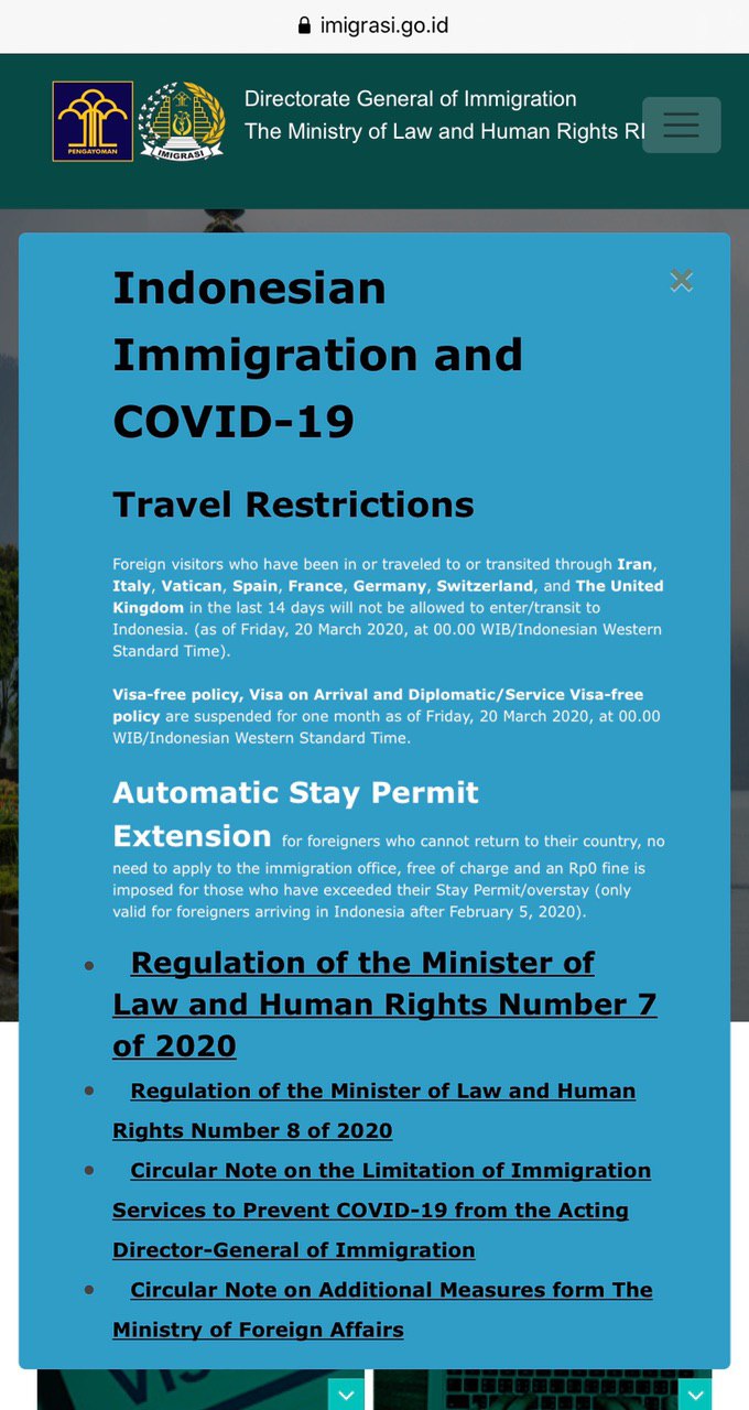 Индонезия › В Индонезии и на Бали иностранцам продлили нахождение/визы |