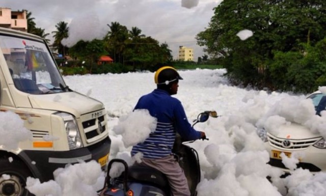 Реальность, к сожалению, оказалась весьма печальной. Город, расположенный на юге Индии, накрыла белоснежная пена из химических веществ и сточных вод, которую "производило" расположенное в городской черте озеро Белландер общей площадью почти в половину гектара.