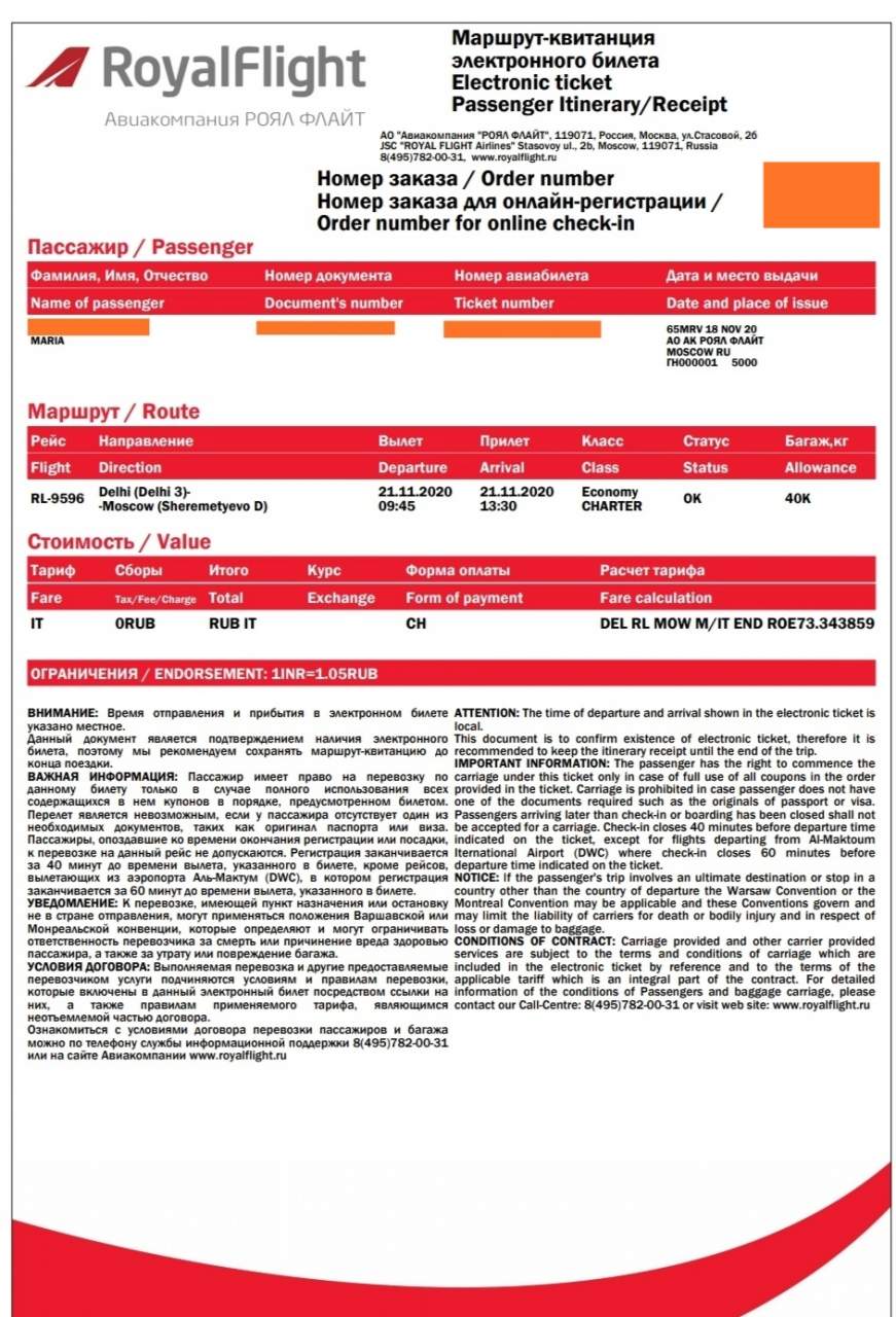 21 ноября должен был состояться рейс Дели-Москва Royal Flights.
