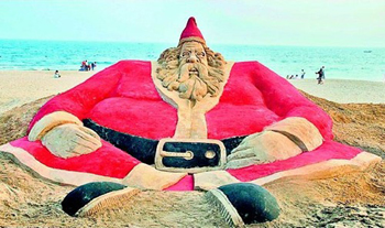 Индия › 100 Санта Клаусов из песка в Пури