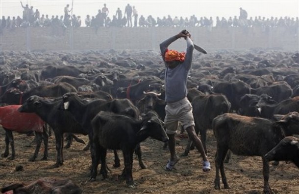 В ходе религиозного фестиваля в честь индуистской богини Гадхимаи в Непале было зарезано более 15 тысяч быков и в прямом смысле несметное число козлов и птиц. Тем самым, по количеству принесенных в жертву животных, праздник стал крупнейшим в мире. По мнению главы оргкомитета фестиваля Шивы Чандры Прасада Кушавахи, масштаб "акции" свидетельствует о силе веры в богиню власти Гадхимаи.