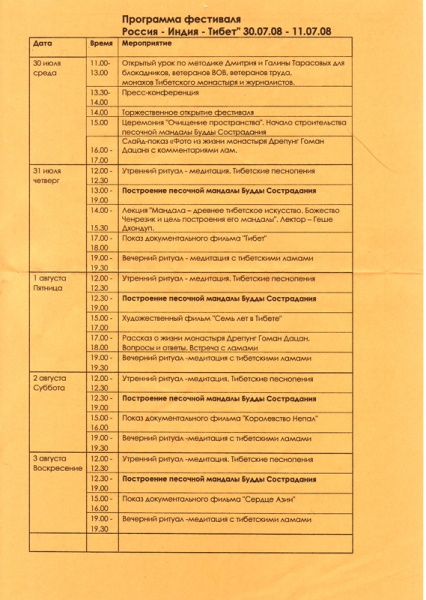 Россия и экс-СССР › Фестиваль "Россия-Индия-Тибет" в Санкт-Петербурге с 30июля по 17 августа